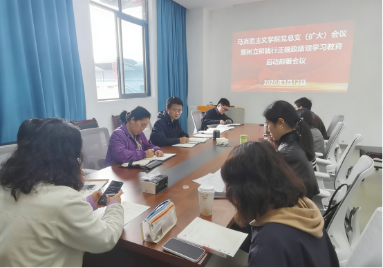 3月12日下午,马克思主义学院召开党总支(扩大)会议,研究部署启动树立和践行正确政绩观学习教育工作。学院领导班子成员、党总支委员、各党支部书记和科级干部参加会议,会议由党总支书记刘浩天主持。